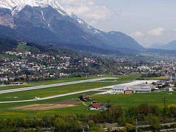 Use of the Innsbruck Airport is restricted to "High Performance" aircraft by Austrian authorities (see the Austro Control link below). The airport lies within a steep East-West valley, requiring non-ICAO standard procedures to approach and depart.
